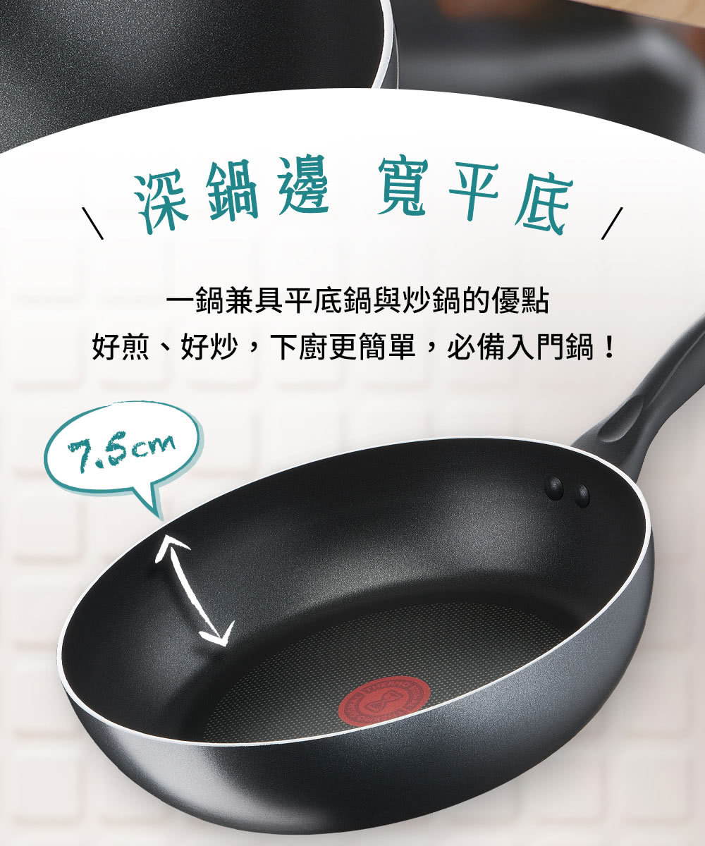 Tefal法國特福cook&clean爵士系列,專為小家庭設計的基本鍋款,鍋內採用TITANIUM鈦合金強化塗層,持久耐用、防沾抗污又好洗,讓下廚變成快樂的事,輕鬆練就好廚藝!