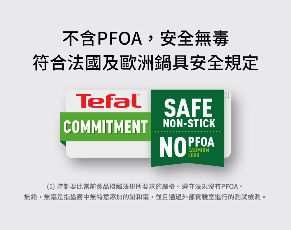 本系列不沾塗層經法國國家認可機構檢定,符合法國及歐洲鍋具安全規定,保證不含PFOA與鉛鎘等重金屬物質,安全無毒,製程環保友善,對人體健康及環境無任何不良影響,安心可靠。