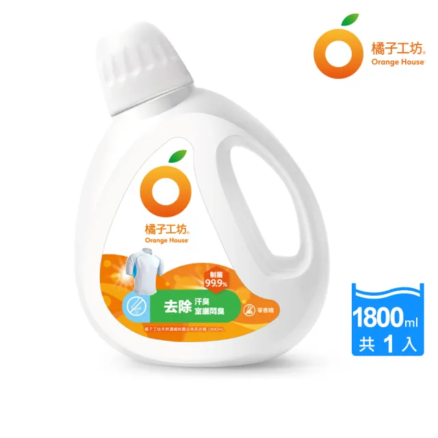 【橘子工坊】天然無香精制菌洗衣精-去味除臭1800ml(洗淨冠狀病毒/AB型流感病毒)