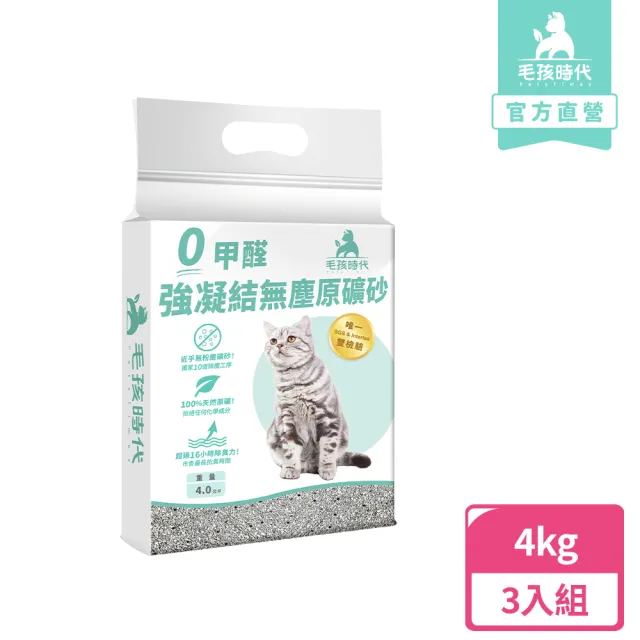 【毛孩時代】0甲醛強凝結無塵原礦砂4kgx3袋(貓砂/礦砂)
