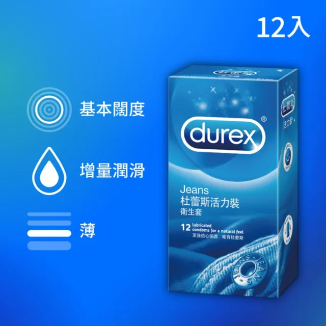 【Durex 杜蕾斯】活力裝保險套1盒(12入 保險套/保險套推薦/衛生套/安全套/避孕套/避孕)
