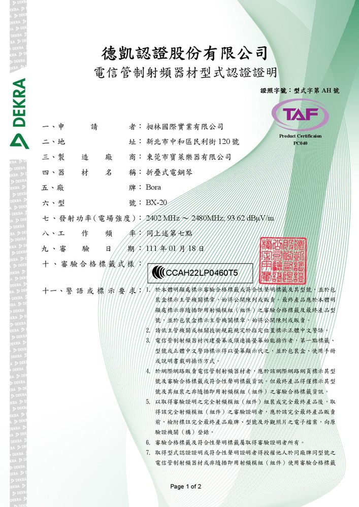 ☆請一定要留意,購買時請認名 Bora BX-20, 購物平台上無標示藍牙功能的,無 ncc認證字號的皆為閹割版本,無法無線連接手機平板電腦,缺少MIDI功能,無法使用編輯作曲功能