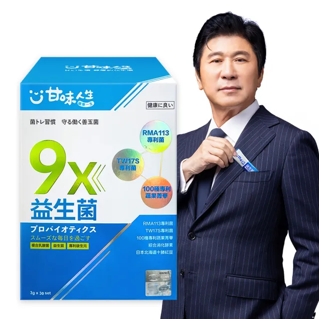 【甘味人生】9x益生菌(30包x1盒/胡瓜代言/9大益菌:益生質+後生元/百種蔬果精華/紅豆多酚/次世代益生菌)