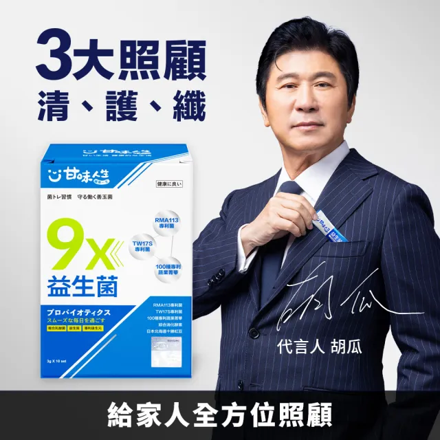 【甘味人生】9x益生菌(10包x1盒/胡瓜代言/9大益菌:益生質+後生元/百種蔬果精華/紅豆多酚/次世代益生菌)