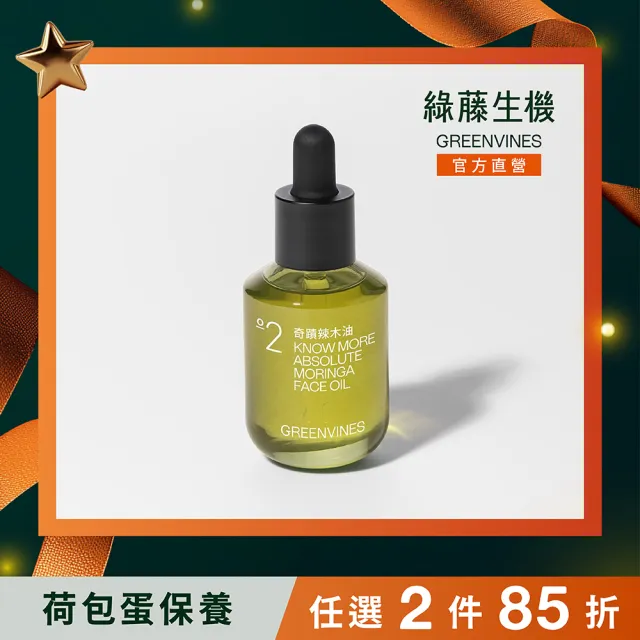 greenvines 綠藤生機 30 秒保濕鎖水★極簡保濕荷包蛋(純粹保濕精華液30ml+奇蹟辣木油30ml)