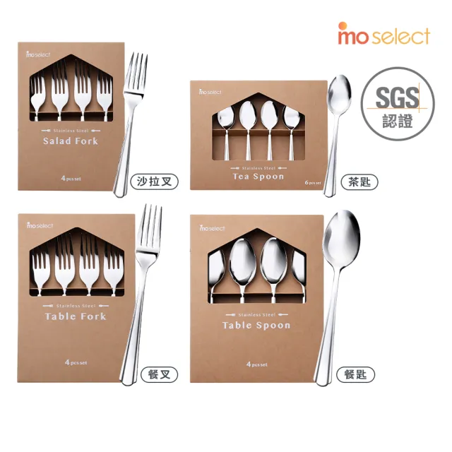 mo select 任選2入組-18-10不鏽鋼湯匙叉子組4入&6入(餐具/湯匙/叉子/沙拉叉/甜點叉/茶匙/咖啡匙/甜點匙)