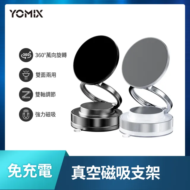 2入組 YOMIX 優迷 360°萬向旋轉免充電真空吸附手機支架(Magsafe適用/拍照神器/雙向吸附/自拍直播導航用)