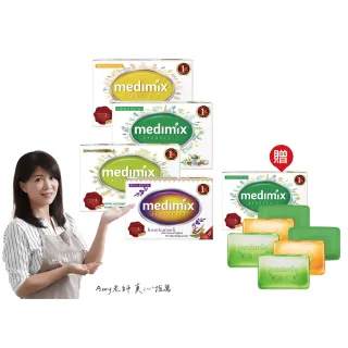 (10)Medimix阿育吠陀尊寵奇蹟美容皂100g(藏紅花)*15+Medimix 阿育吠陀草本精萃皂125g(淺綠)*5+Medimix 皇室御用香白美肌皂125g(橘色)*5+Medimix 阿育吠陀百年經典美膚皂125g(深綠)*5