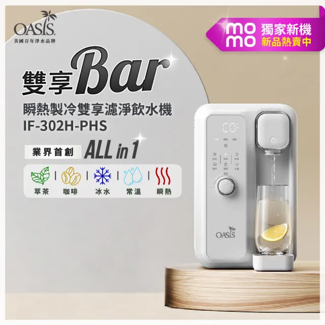 • mo獨家【美國OASIS】瞬熱製冷雙享濾淨飲水機 雙享Bar(UVC殺菌)