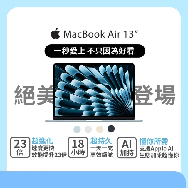 Apple 無線滑鼠+電腦包★MacBook Air 13.6吋 M4 晶片 10核心CPU 8核心GPU 16G 256G SSD