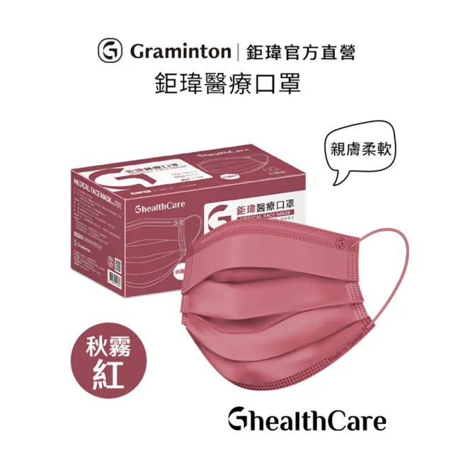 【鉅瑋】醫療口罩X秋霧紅-純色系列-50片/盒(成人雙鋼印口罩 平面口罩 MIT 臺灣製造)