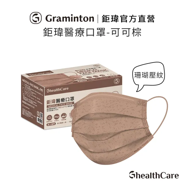 【鉅瑋】醫療口罩X可可棕-珊瑚系列-50片/盒(成人雙鋼印口罩 平面口罩 MIT 臺灣製造)