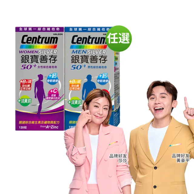 【銀寶善存】任選-50+男性/女性綜合維他命(120錠/盒-男女專屬配方 22種人體必需關鍵營養素 思緒清晰)
