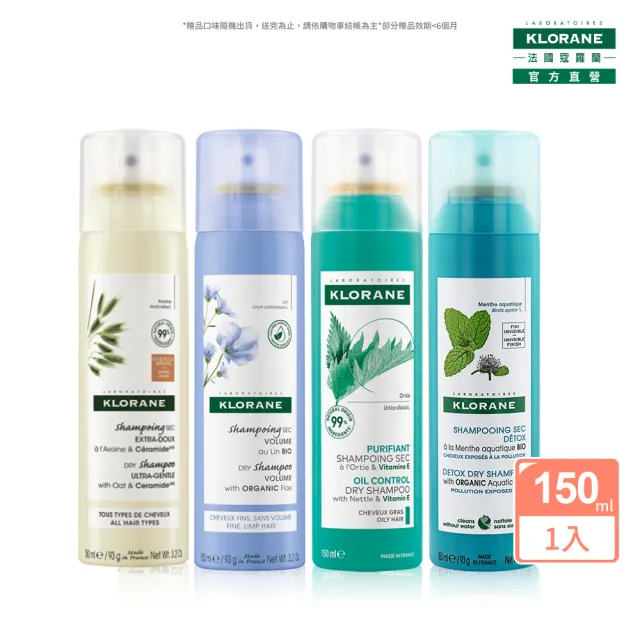 KLORANE 蔻蘿蘭官方直營 任選3入乾洗髮噴霧150ml(涼感/豐盈/澎鬆/根源控油)