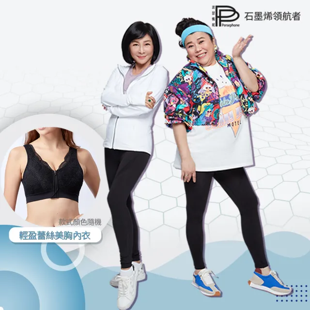 【PP 波瑟楓妮】石墨烯塑崩褲+輕盈蕾絲美胸內衣窈窕美胸組(拉鍊內衣款式顏色隨機 林美秀吳淡如代言 經典黑)