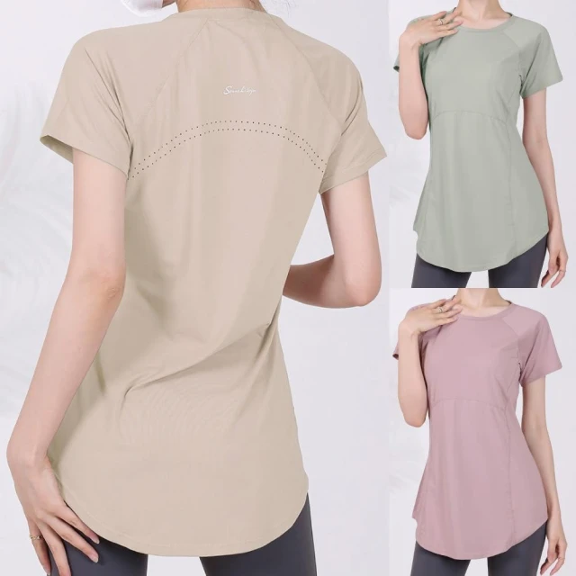 【FT SHOP】長版修身短袖上衣 長版設計 可遮臀部瑜伽跑步 健身 有氧 短袖上衣 運動上衣